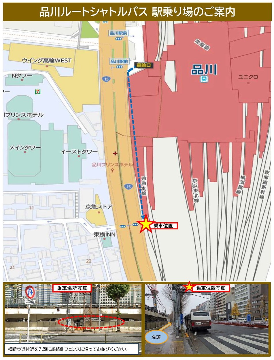 現在、品川ルートのシャトルバスにつきまして、品川駅周辺の工事による通行規制の影響で、大幅な遅延(30分以上)が頻発しています。
