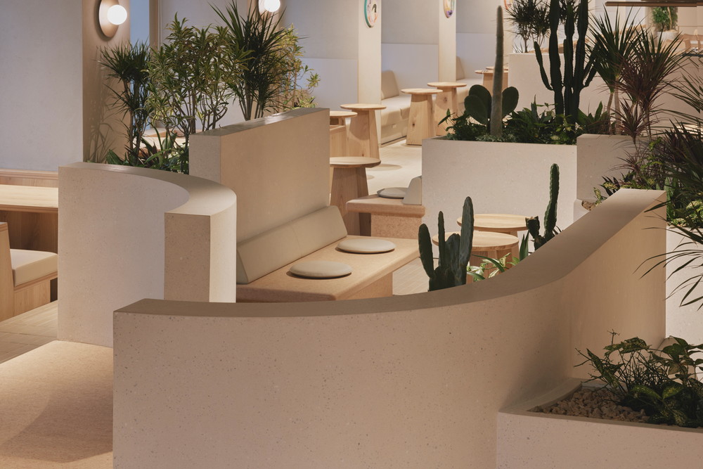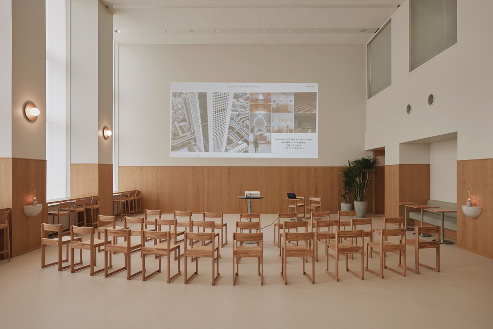 また、低層階のガレリア・サンクンガーデンがもつ開放的で格調高い半屋外空間を参照し、スケルトン天井による伸びやかな空間構成を行うとともに、左官研出しなどの素材を用いることで上質さを演出しました。さらに、豊かな植栽を随所に配置することで、利用者のウェルネスにも配慮した環境を整えています。